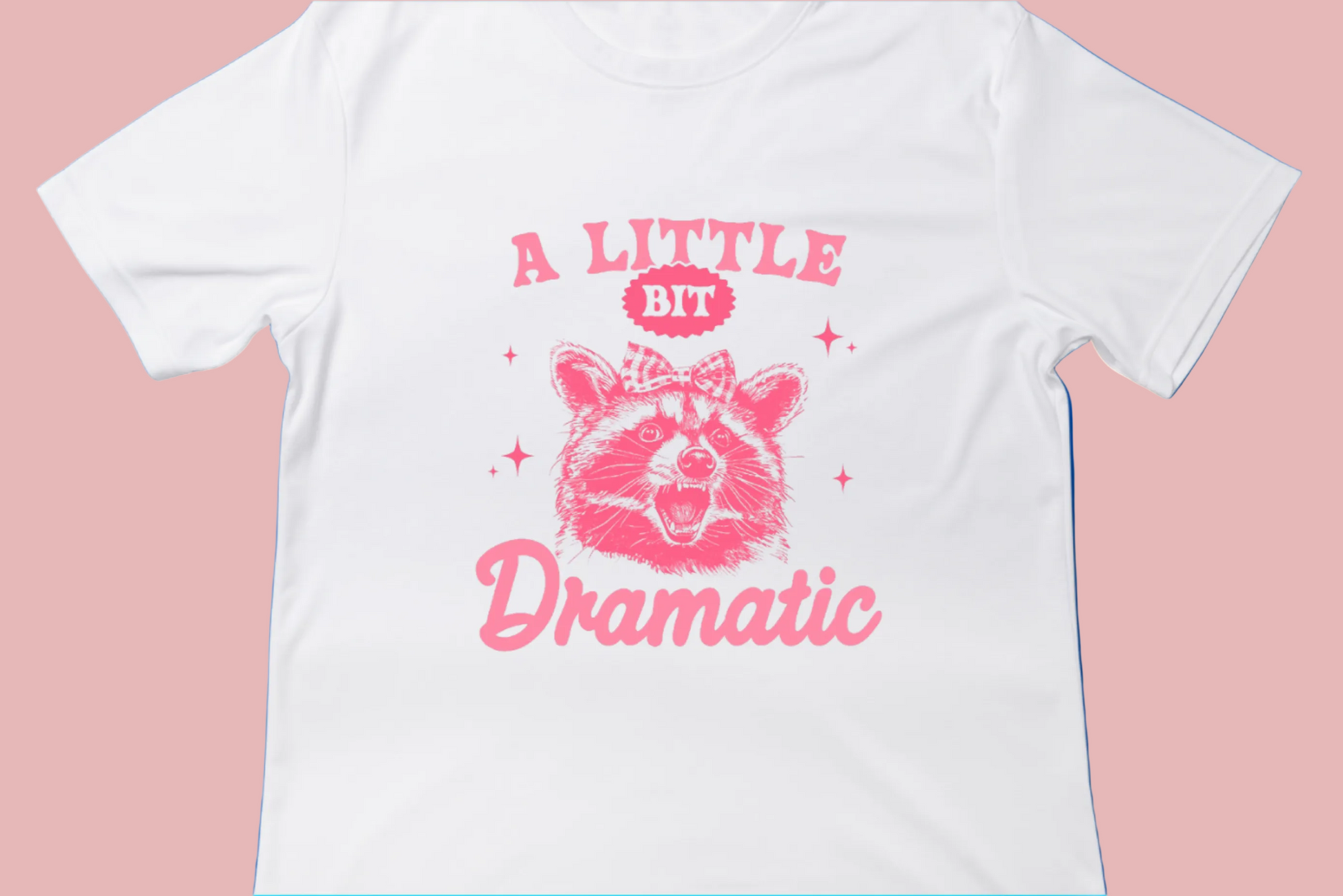 Featuring a raccoon mid-yell, accessorized with a bow and absolutely no chill, this tee captures exaggerated emotions and unapologetic expression. Cute, loud, and wildly relatable.