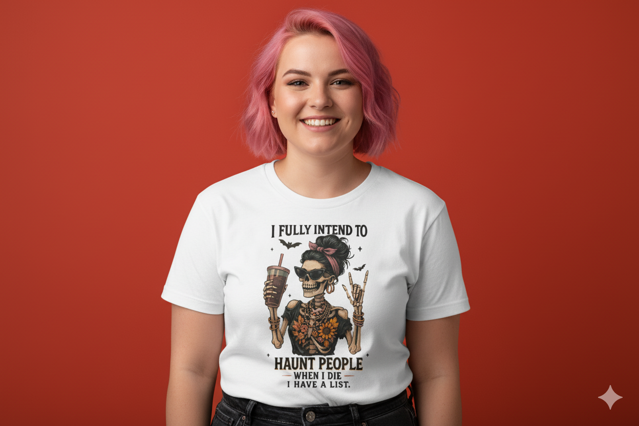 Whether you're sipping from the spirit realm or just making your list (and checking it twice), this shirt says: I fully intend to haunt—and I’ll look fabulous doing it. So grab yours now and let your wardrobe live forever in style.