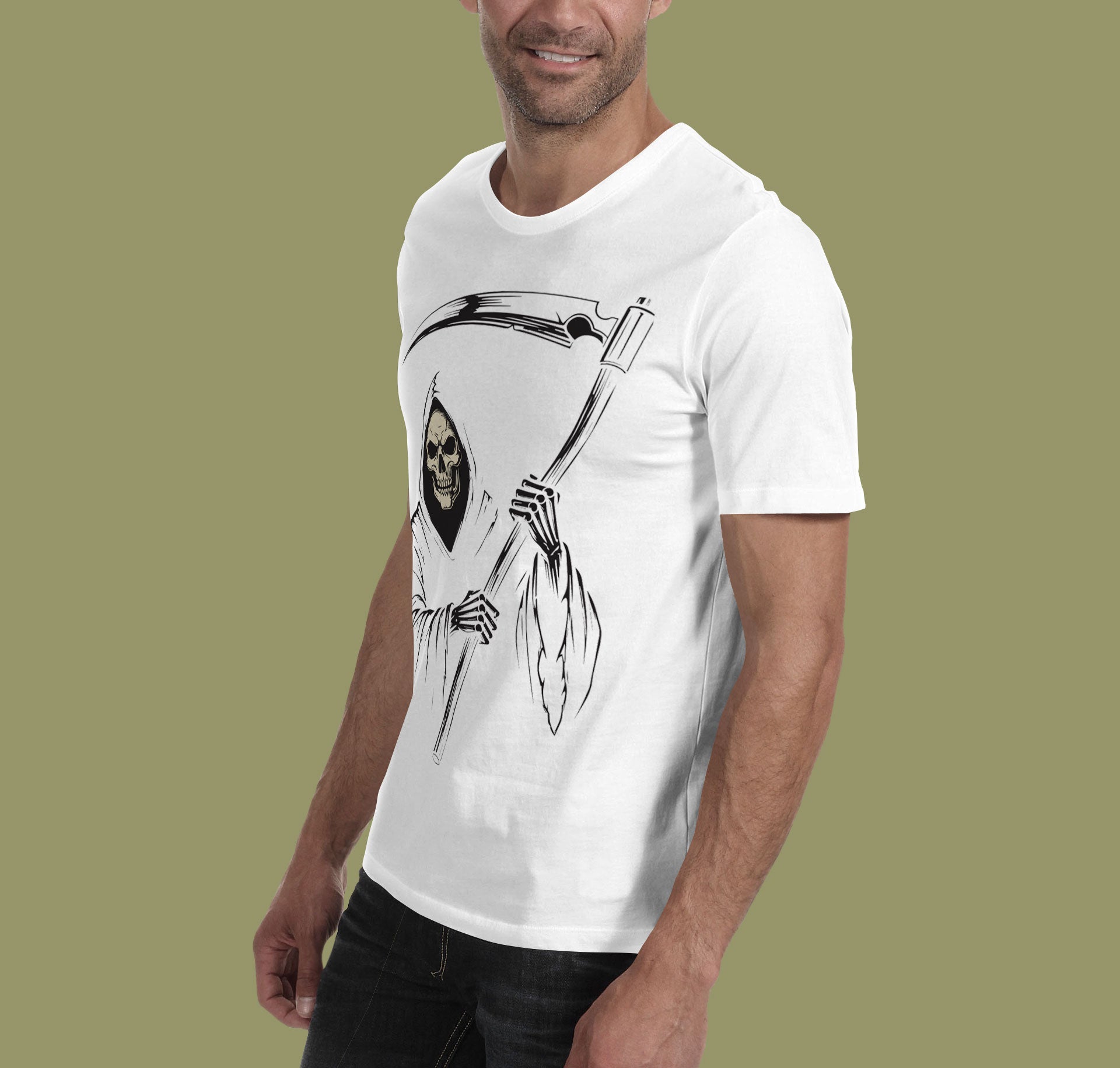 Because nothing says 'stay back' like a casual stroll with Death’s scythe. Sharp style, killer vibes.