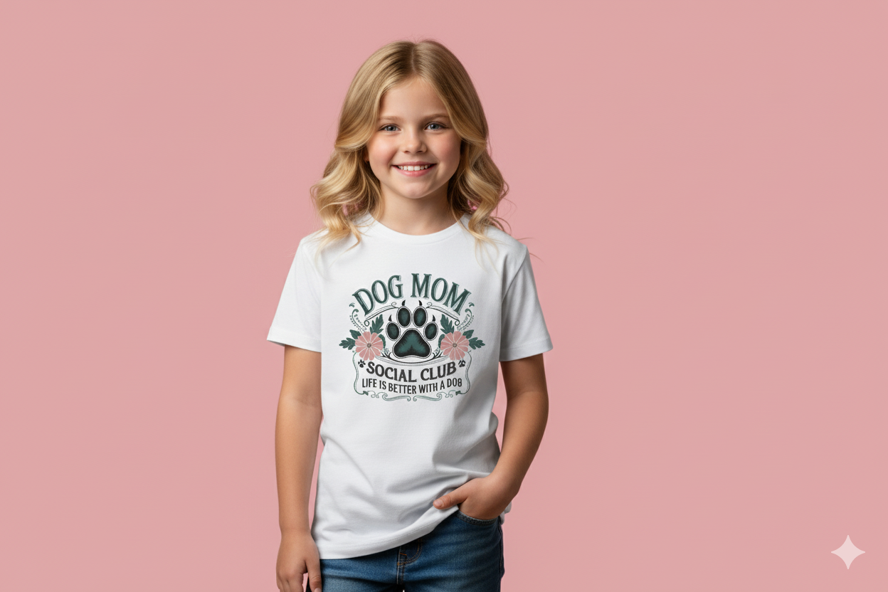 🐶 Calling all proud dog moms: this tee isn’t just fashion—it’s a lifestyle. With bold “DOG MOM” lettering, a paw print that’s basically a badge of honor, and floral flair that says “I cuddle AND conquer,” this shirt is your official membership card to the Social Club of Snuggles & Sassy Walks.