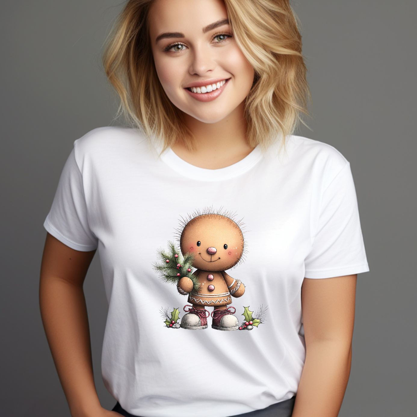 Your gingerbread cutie holding a pine branch adds a rustic, woodsy twist to the season.