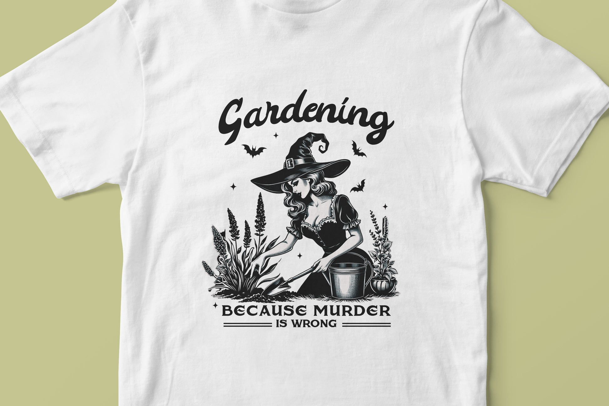Whether you're planting herbs or burying grudges, this shirt says: I garden because murder is wrong—and I look fabulous doing it. So grab yours now and let your spooky season bloom with sass.