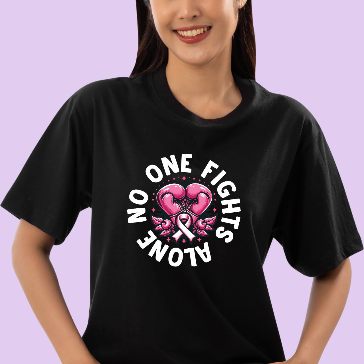💪 This tee is more than fabric—it’s a movement. With a bold pink ribbon and a message that speaks volumes, it reminds every fighter and survivor that they’re never walking this road by themselves. Love, faith, and community are always by their side.