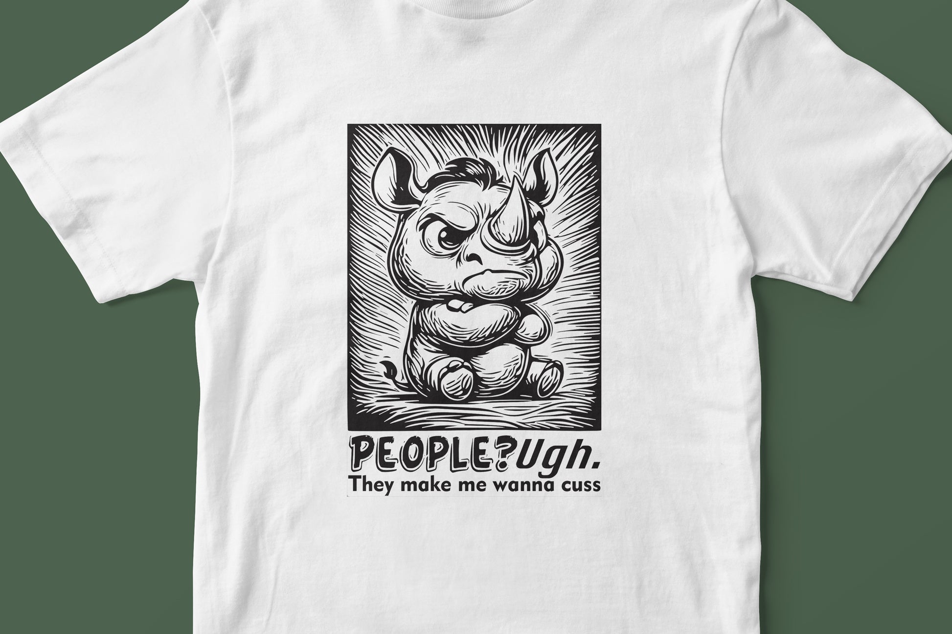 This hilarious tee perfectly captures those days, am I right?! 😉 Featuring a super grumpy rhino with a serious case of the "ughs," this shirt playfully declares, "PEOPLE? Ugh. They make me wanna cuss." It's the ultimate way to express your inner feelings without actually, you know, cussing.