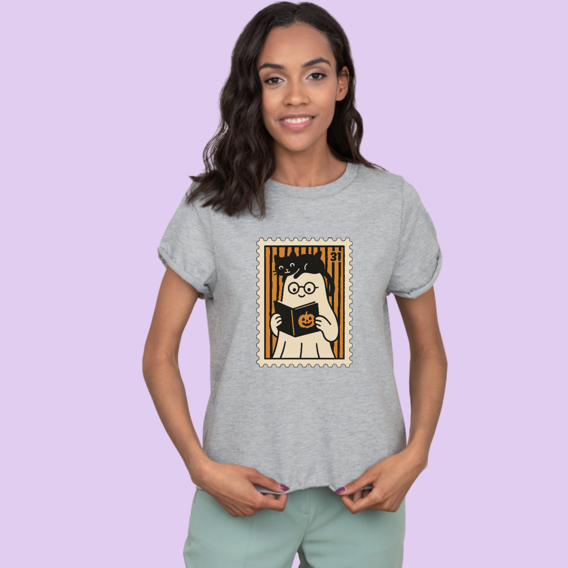 💪 Curl up with your favorite ghostly tale! This charming tee features a sweet ghost in glasses reading a pumpkin-covered book, complete with a curious black cat perched on top. Perfect for readers, cat lovers, and anyone who prefers a quiet haunt over a loud scare.